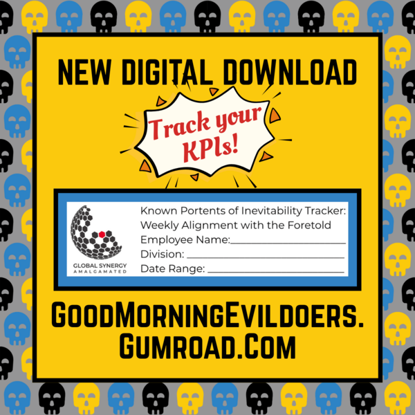 Good Morning Evildoers is a twice-monthly podcast of comedic creepiness. Brought to you by Global Synergy Amalgamated, this "narrative entertainment" has nothing in common with any organizations hidden beneath Denver International Airport. Nope. Nothing under there.